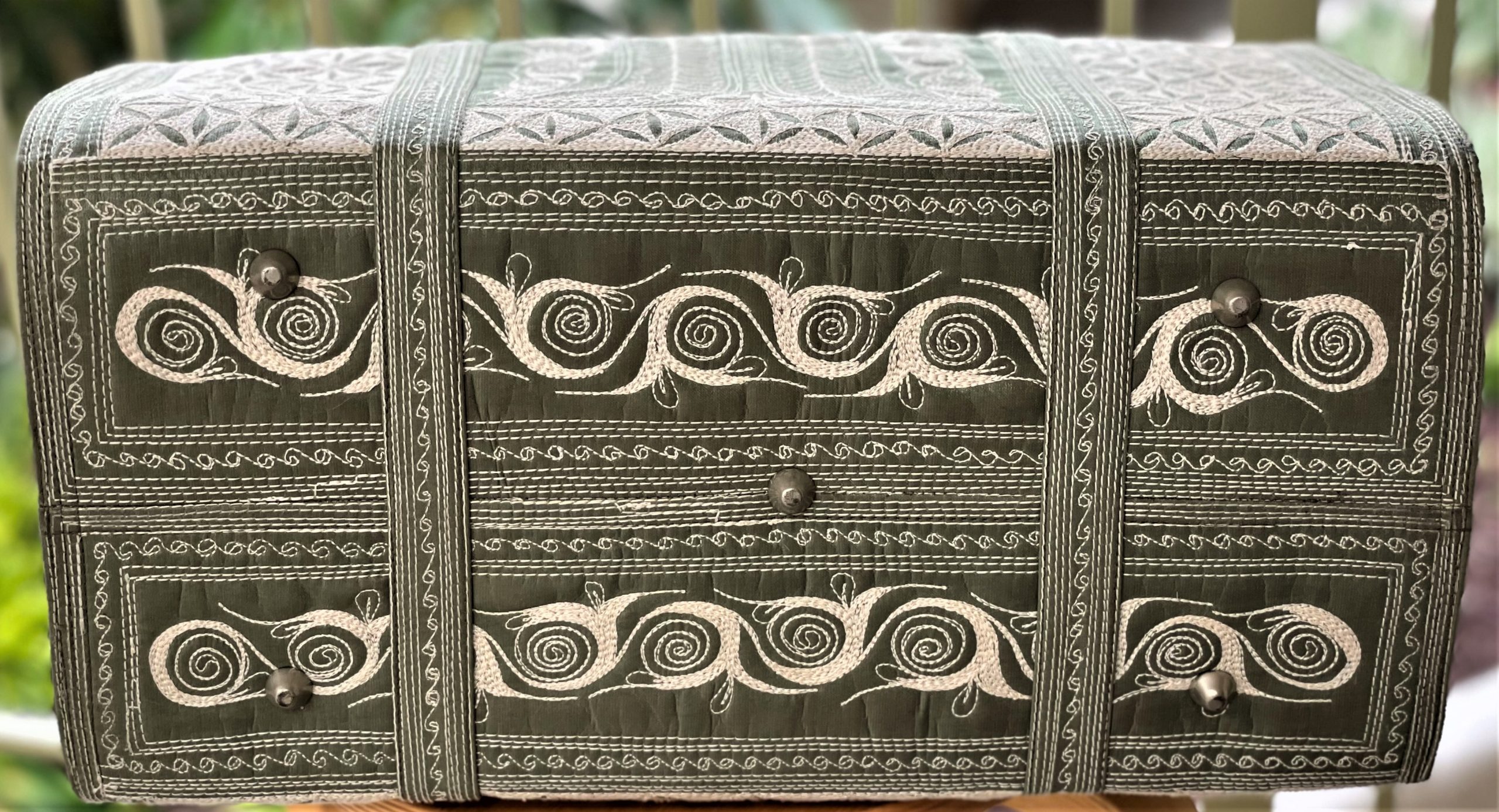The KUAT is our second largest travel bag, only one (1) in stock, the color is an Olive Cream, beautifully handmade by tsunami survivors of Indonesia.