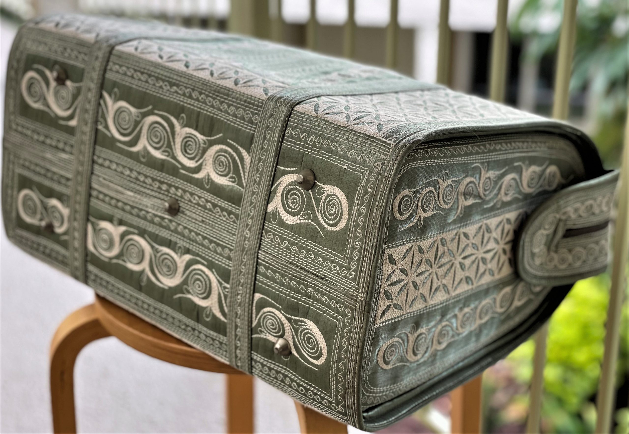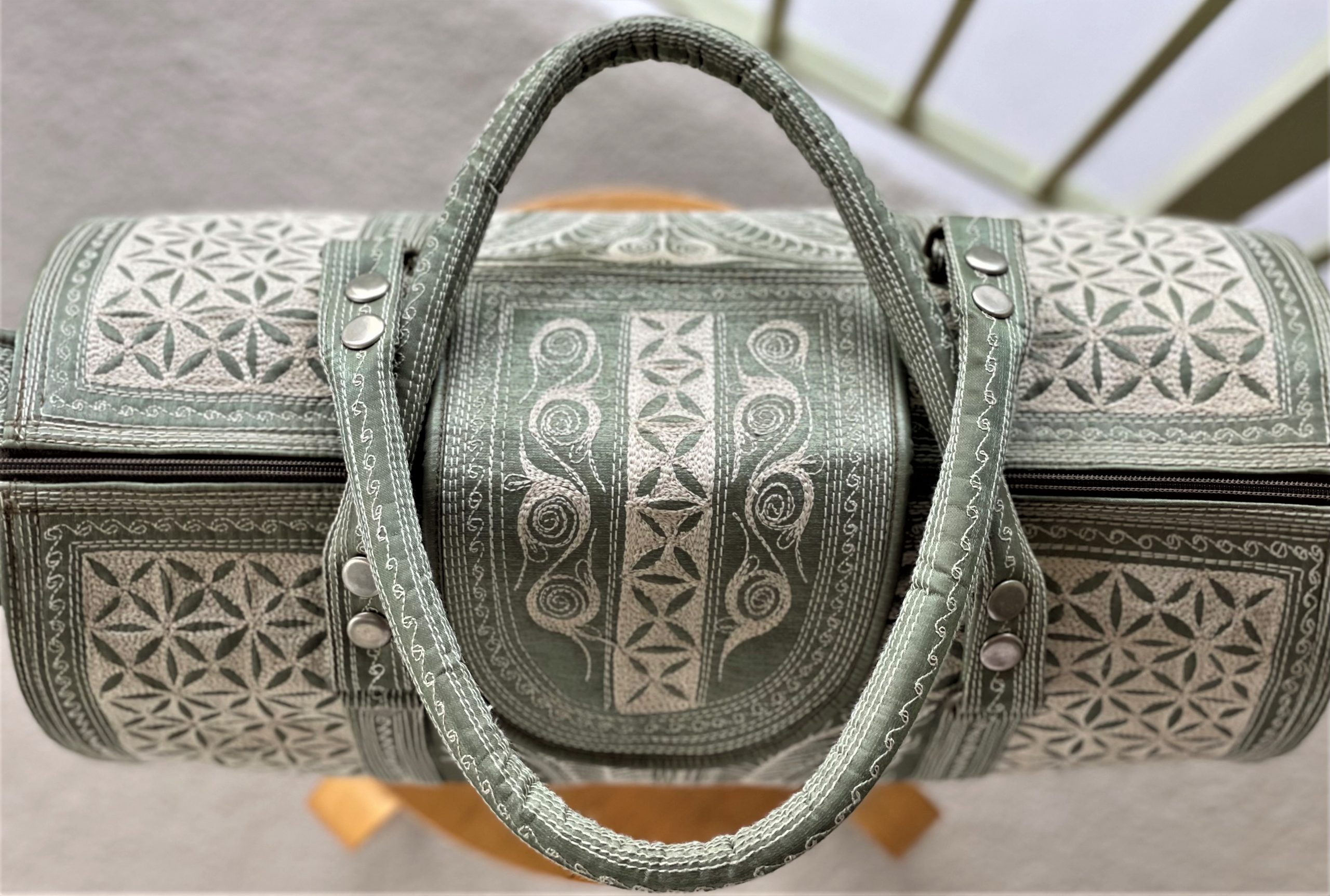 The KUAT is our second largest travel bag, only one (1) in stock, the color is an Olive Cream, beautifully handmade by tsunami survivors of Indonesia.