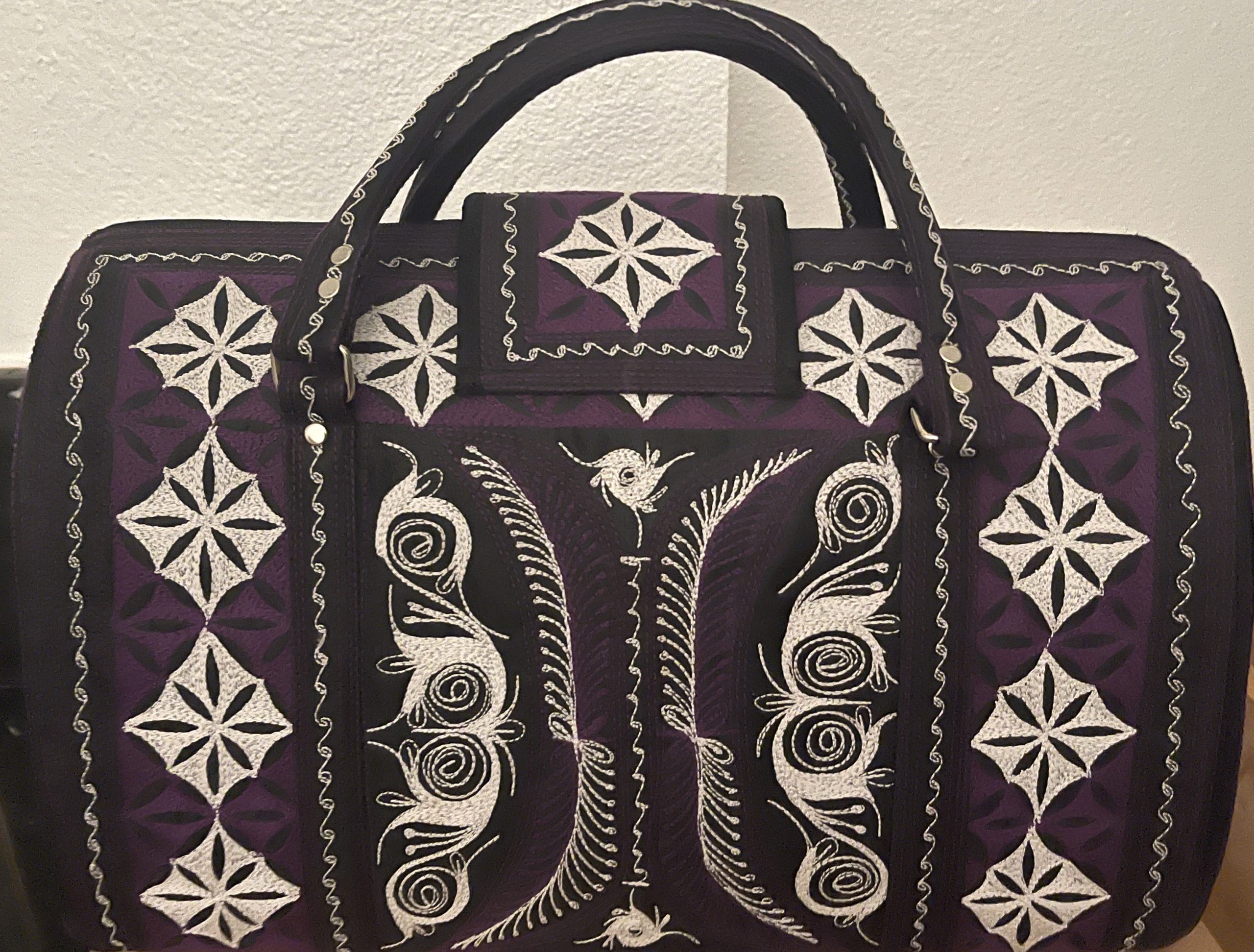 Utama handmade handbag vegan free motion embroidered by Laga Handbags